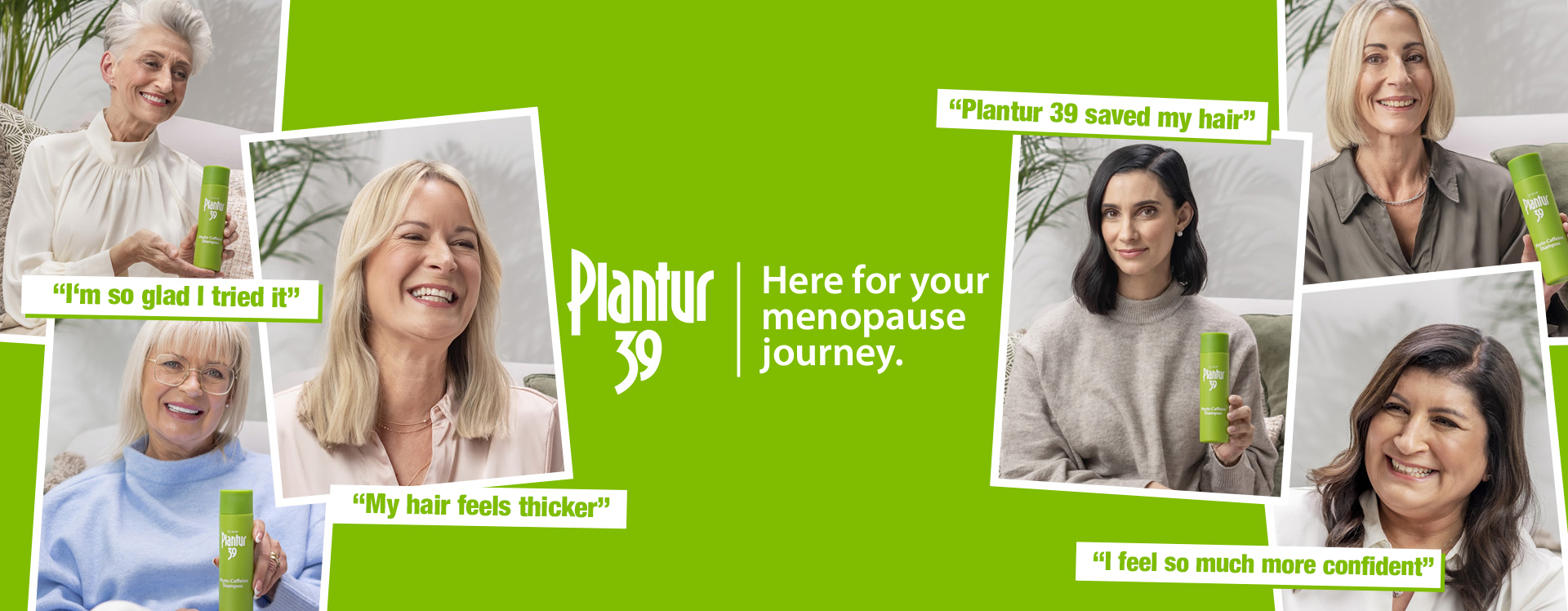 Introducing the Plantur 39 Phyto-Caffeine hair care range specifically formulated for women experiencing thinning hair due to menopause.